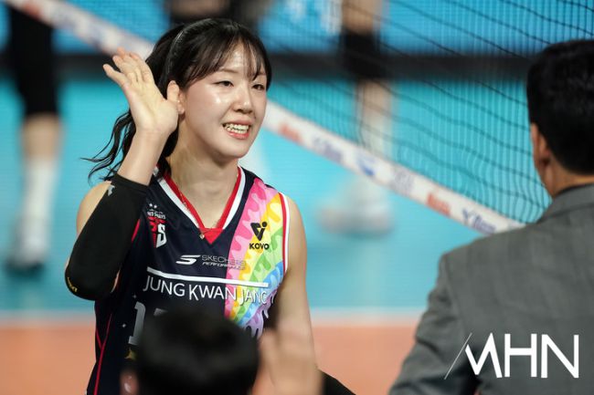 19일 대전충무실내체육관에서 '2025-2026 V-리그 여자부' 정관장 대 GS칼텍스 경기가 열렸다. 이날 정관장의 새로운 아시아 쿼터 선수 몽골 출신 아웃사이드 히터 자미얀푸렙 엥흐서열(등록명 인쿠시)가 새로운 무대 데뷔전을 펼쳤다. 정호영이 경기를 펼치고 있다.