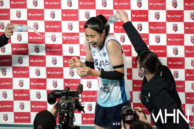 [mhn포토] 최유림, 앞 뒤 양쪽에서 쏟아지는 물세례