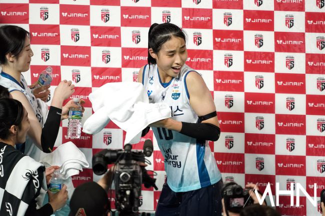 19일 대전충무실내체육관에서 '2025-2026 V-리그 여자부' 정관장 대 GS칼텍스 경기가 열렸다. 이날 정관장의 새로운 아시아 쿼터 선수 몽골 출신 아웃사이드 히터 자미얀푸렙 엥흐서열(등록명 인쿠시)가 새로운 무대 데뷔전을 펼쳤다. 이날 정관장과 GS칼텍스 경기는 1-3(25-22, 20-25, 19-25, 17-25)으로 GS칼텍스가 승리했다. MV