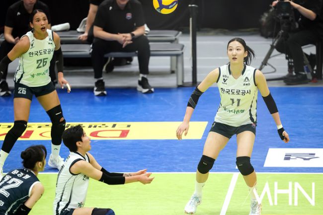 24일 경기도 수원실내체육관에서 '진에어 2025~2026 V-리그' 여자부 6라운드 현대건설(2위 56점 19승 11패)과 한국도로공사(1위 59점 21승 9패) 경기가 열렸다. 3연패에 빠진 한국도로공사가 부진한 틈을 타 현대건설은 4연승을 질주하며 맹추격하고 있다. 김세인이 경기를 펼치고 있다.