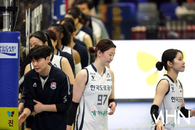 24일 경기도 수원실내체육관에서 '진에어 2025~2026 V-리그' 여자부 6라운드 현대건설(2위 56점 19승 11패)과 한국도로공사(1위 59점 21승 9패) 경기가 열렸다. 3연패에 빠진 한국도로공사가 부진한 틈을 타 현대건설은 4연승을 질주하며 맹추격하고 있다. 현대건설이 1위인 한국도로공사를 3-2(26-24, 25-17, 23-25, 10-25