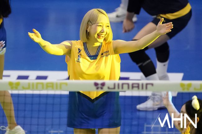 5일 수원실내체육관에서 '진에어 2025~2026 V-리그' 여자부 현대건설(2위 61점 32경기 21승 11패)과 흥국생명(3위 53점 33경기 17승 16패) 경기가 열렸다. 현대건설 박성은 치어리더가 공연을 펼치고 있다.