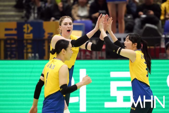 5일 수원실내체육관에서 '진에어 2025~2026 V-리그' 여자부 현대건설(2위 61점 32경기 21승 11패)과 흥국생명(3위 53점 33경기 17승 16패) 경기가 열렸다. 카리가 경기를 펼치고 있다.