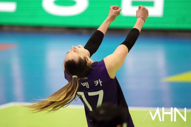 5일 수원실내체육관에서 '진에어 2025~2026 V-리그' 여자부 현대건설(2위 61점 32경기 21승 11패)과 흥국생명(3위 53점 33경기 17승 16패) 경기가 열렸다. 레베카가 경기를 펼치고 있다.