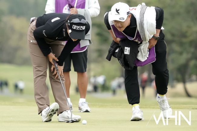 [mhn포토] 최예림, 캐디 이계호와 떨어지기 기다린다