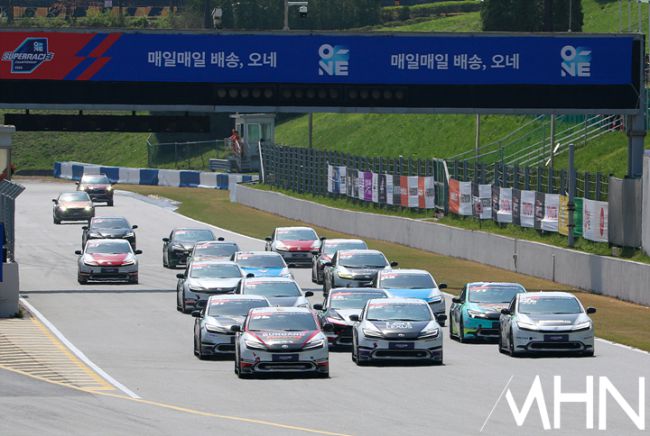'2025 오네(O-NE) 슈퍼레이스 챔피언십' 개막전이 지난 19일(토)부터 20일(일)까지 양일간 경기도 용인시 에버랜드 스피드웨이(1랩=4.346㎞)에서 펼쳐졌다. 20일 프리우스 PHEV 결승전 경기에서 차량들이 큰 배기음 없이 스타트 하고 있다. 한편 슈퍼레이스 챔피언십 1라운드는 6000 클래스 결승전에서는 이창욱(No.24, 금호SLM)이 1시