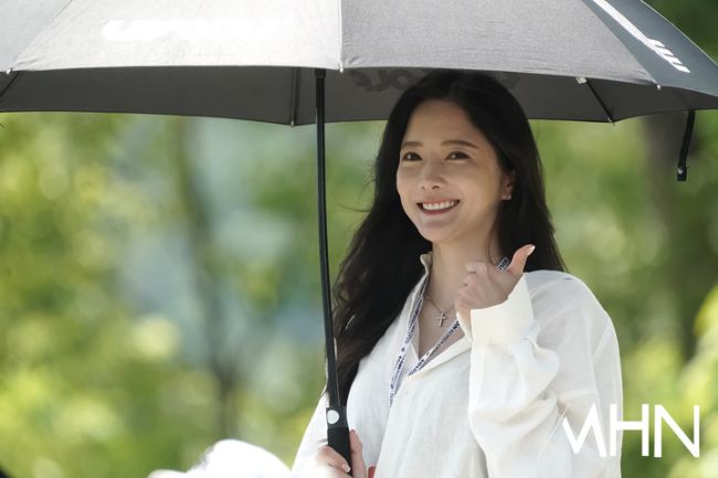 22일 강원도 춘천시에 위치한 라비에벨 컨트리클럽 듄스코스(파72ㅣ6,792미터)에서 대한골프협회 주관하는 내셔널 타이틀 '코오롱 제67회 한국오픈골프선수권대회'(총상금 14억 원, 우승 5억 원) 1라운드가 열렸다. 정지유(큐캐피탈파트너스)가 친구 대니리를 응원하고 있다.