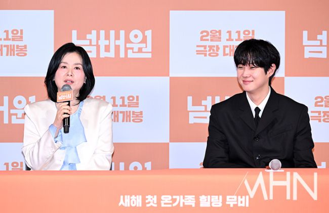 배우 장혜진이 29일 오후 서울 용산구 CGV용산아이파크몰에서 진행된 영화 '넘버원' 시사회 및 기자간담회에 참석하고 있다. 이날 기자간담회에는 배우 최우식, 장혜진, 공승연과 김태용 감독이 참석했다. 영화 '넘버원'은 어느 날부터 엄마의 음식을 먹을 때마다 하나씩 줄어드는 숫자가 보이기 시작한 하민(최우식)이, 그 숫자가 0이 되면 엄마 은실(장혜진)이