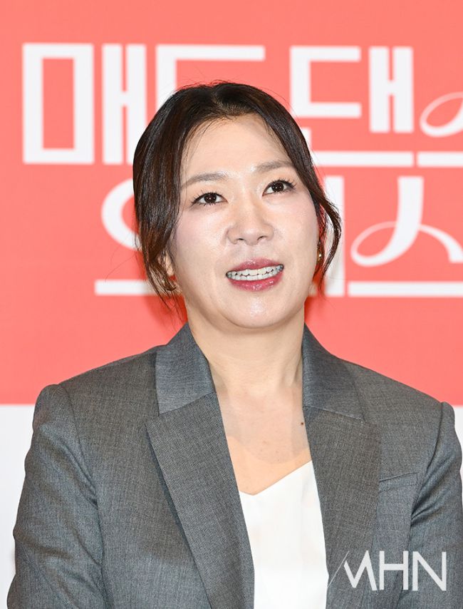 배우 염혜란이 24일 오후 서울 용산구 CGV용산아이파크몰에서 진행된 영화 '매드 댄스 오피스' 시사회 및 기자간담회에 참석하고 있다. 기자간담회에는 조현진 감독과 배우 염혜란, 최성은, 아린이 참석했다. '매드 댄스 오피스'는 24시간 완벽하게 살아오던 공무원 국희(염혜란)가 조금 망해버린 인생 앞에서 플라멩코 스텝을 밟으며 몰랐던 희망을 찾아가는 이야기