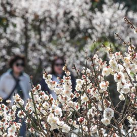 봄 재촉하는 비 앞두고 활짝 피어난 제주 매화