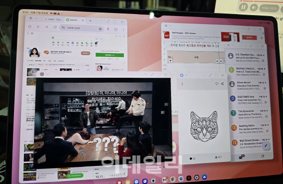 갤럭시탭 S11 울트라에 5개 앱을 동시에 띄운 모습(사진=윤정훈 기자) |