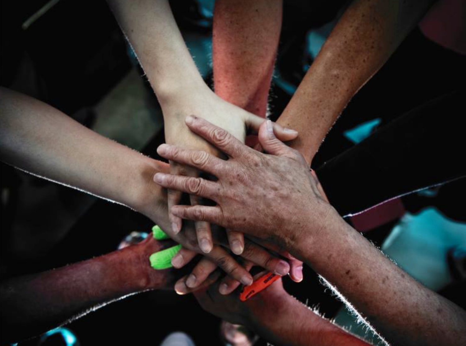치료 환경과 인식 개선을 위해 건선 환우들이 모여 손을 잡은 모습. (사)한국건선협회 제공 |