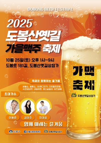 (서울=연합뉴스) 정준영 기자 = 도봉구(구청장 오언석)는 오는 25일 도봉산옛길 상점가에서 '2025 도봉산옛길 가을맥주축제'를 연다고 17일 밝혔다.