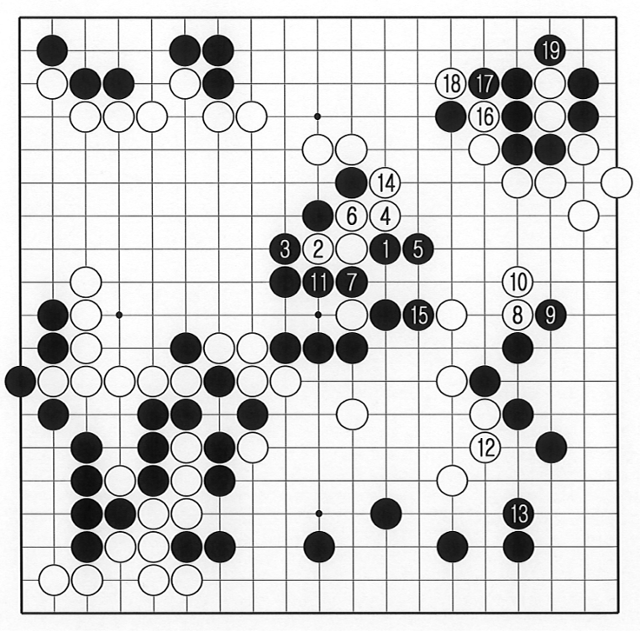 박민규 9단이 마지막 희망을 안고 중앙 공격에 나선 상황. 그러나 공격보다 타개를 훨씬 선호하는 박정환 9단 입장에선 너무나 쉬운 장면이었다. 흑1의 붙임이 정확한 흑의 대응. 백4, 6으로 나올 수밖에 없는 동안 흑7로 한 점을 잡아 사실상 잡히기 힘든 상태. 11도 백1, 3으로 압박하는 것이 최선이나 흑6이 좋은 연결. 흑8, 10으로 빠져나와 백이 안 되는 수순이다. 너무 안 되는 것이 뻔히 보이자 박민규 9단은 어쩔 수 없이 실전 백8, 10으로 벽을 쌓는다. 그동안 박정환 9단은 흑11에 연결해 승리에 쐐기를 박았다. 박민규 9단은 백12, 16의 연장책에 가까운 수를 두다 도저히 안 된다고 판단. 흑19가 놓이자 돌을 거둔다. 비교적 때 이른 단명국. 박정환 9단의 흑 불계승이다. 좌하귀 절충에서 박민규 9단이 실리 균형을 크게 잃어버린 것이 패인이었다. 돌을 거둔 시점에서 12도 백1, 3으로 대마를 잡으러 가봤자 흑6에 웅크리면 이미 두 집이 나 있는 형태다. 한편 박정환 9단은 이 승리를 통해 패자부활에 성공하며 신진서 9단과 명인 타이틀을 놓고 맞붙게 됐다.