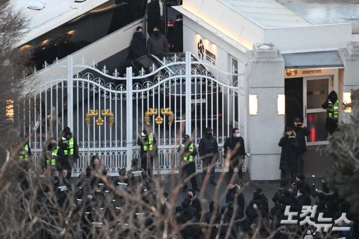 윤석열 전 대통령에 대한 2차 체포영장 집행이 시작된 지난 1월 15일 서울 용산구 한남동 관저에 공수처와 경찰이 진입하고 있다. 류영주 기자 |