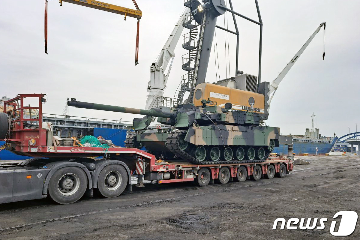 폴란드 그드니아 항구에 도착한 폴란드 K2 전차 모습(현대로템 제공). ⓒ News1 박주평 기자 |