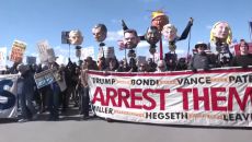 [르포] 벚꽃 만발 워싱턴DC 한복판의 분노…"트럼프를 끌어내라"