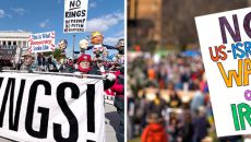 “트럼프 배 불리는 전쟁” “학교폭격 살인” 美 사상 최대 반전시위