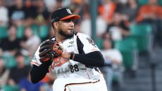 (엑스포츠뉴스 권동환 기자) 지난해 중반까지 삼성 라이온즈에서 뛰었던 외국인 투수 데니 레예스(퉁이 라이온즈)가 KBO리그 환- 2026.04.25 00:12