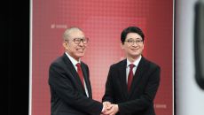 (부산=연합뉴스) 김선호 기자 = 부산시장 선거 국민의힘 경선 후보인 박형준 시장과 주진우 의원은 2일 열린 2차 TV 토론에- 2026.04.02 23:49