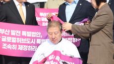 박형준 "부산서 얼굴 들고 다닐 수 없다" 삭발…부산특별법 촉구(종합)