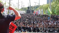 '조합원 사망' 화물연대 진주 집결…총력 투쟁 선포