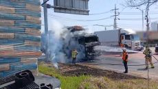 평택서 도로 주행중인 화물차에서 불…인명피해 없어