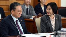 [포토]공명선거 관계장관회의에서 대화하는 정성호 장관과 이스란 차관