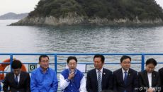 [the300] 경남 통영시 욕지도 배 타고 최고위원회의 이날 현장에는 김경수 민주당 경남도지사 후보도 함께 했다. 정 대표는- 2026.04.22 10:52