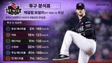 [AI그래픽] KT 케일럽 보쉴리, 12일 수원 두산전 투구분석