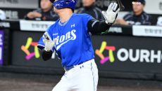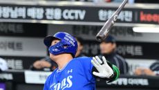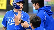 [사진]원태인, '최형우 득점에 기분 좋아'