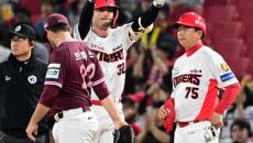 [사진] 류현인, 부상 교체 사인 보내는 중