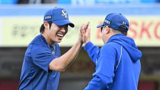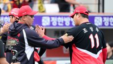 [사진] 원태인 복귀전 축하하는 박진만 감독