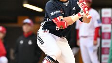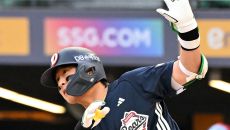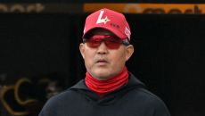 [포토]친정팀 동료들에게 인사하는 SSG 김재환