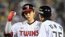 [포토] 홍창기 '5회 드디어 안타 성공'
