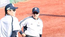 [사진]손아섭,'양의지와 훈련하며 활짝'