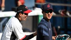 [사진]노진혁 손 꼭 잡은 모창민 코치