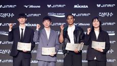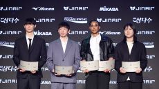 [OSEN=민경훈 기자] 13일 오후 서울 광진구 그랜드 워커힐 호텔 비스타홀에서 ‘진에어 2025-2026 V리그’ 시상식이- 2026-04-13 17:58