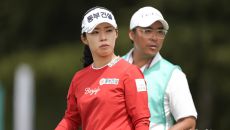 [mhn포토] 김수지, 캐디 송인식과 후반전 시작