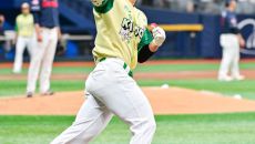 [사진]이주형 초구 솔로홈런 허용한 롯데 선발 박세웅