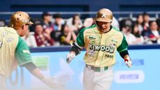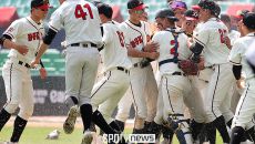 [사진]선취 솔로포 이주형, 설종진 감독님! 오늘 꼭 승리할게요