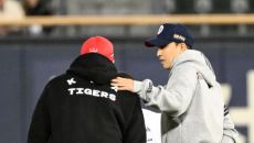 17일 잠실구장에서 열린 두산과 KIA의 경기. 나성범, 손아섭이 인사를 나누고 있다. 잠실=박재만 기자 pjm@sportsc- 2026-04-17 20:28