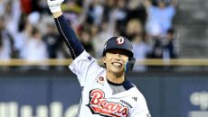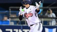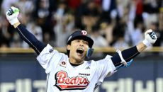 [사진]연장 10회 끝내기타 터트린 두산 이유찬, '하늘을 나는 기분'