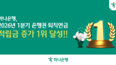 하나은행(은행장 이호성)은 2026년 1분기 은행권 퇴직연금 적립금 증가 1위를 달성했다고 밝혔다. 금융감독원 통합연금포털 퇴- 2026-04-15 13:54
