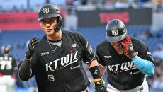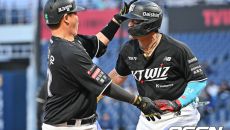 [사진] 장성우, 안현민과 함께하는 홈런 하이파이브
