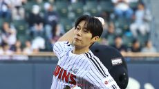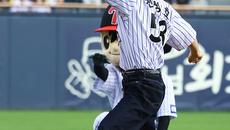 [ST포토] 윤두준, 천성호 유니폼 입고 시구