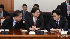 김정관 산업통상부 장관(오른쪽부터), 이억원 금융위원장, 이형일 재정경제부 1차관이 15일 서울 종로구 정부서울청사에서 열린- 2026-04-15 09:12