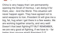 트럼프 "호르무즈 해협 영구개방에 중국 기뻐해"