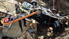 15일 경기 하남에서 열린 ‘중대재난대응 유관기관 합동 훈련’에서 소방관들이 싱크홀 발생 상황을 가정해 매몰된 차량의 인명 구- 2026-04-16 00:46