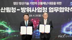 박은식산림청장(왼쪽)이 20일 산림항공본부에서 방위사업청과 첨단 방산기술을 활용한 산불재난 대응 체계 강화를 위한 업무협약을- 2026-04-20 17:36